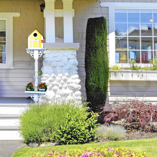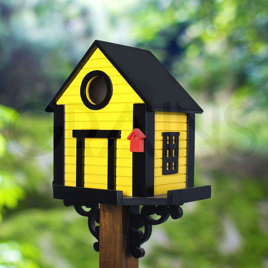 Long Yellow Bird House with White Stand