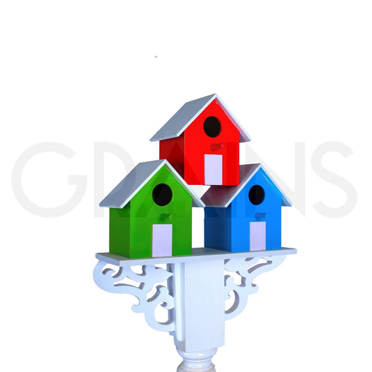 Long Three Birdhouses with White Stand & Planter Shelve