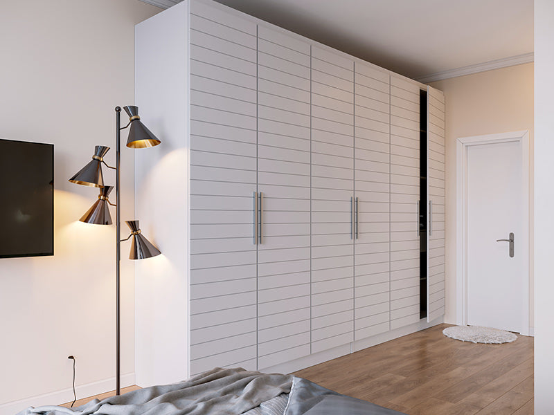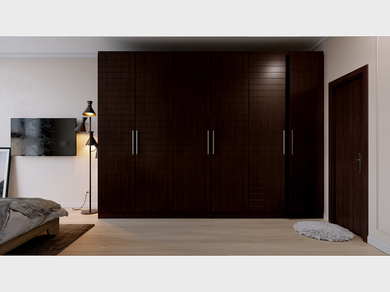 A modern design with openable doors with a classic paneled look carefully crafted with a thermos treated 3D film wrapped to perfection using state of the art technology. The wardrobe is completely customizable including a mirror option so as to suit your taste and needs available in elegant oak finishes in white, graphite and brown.